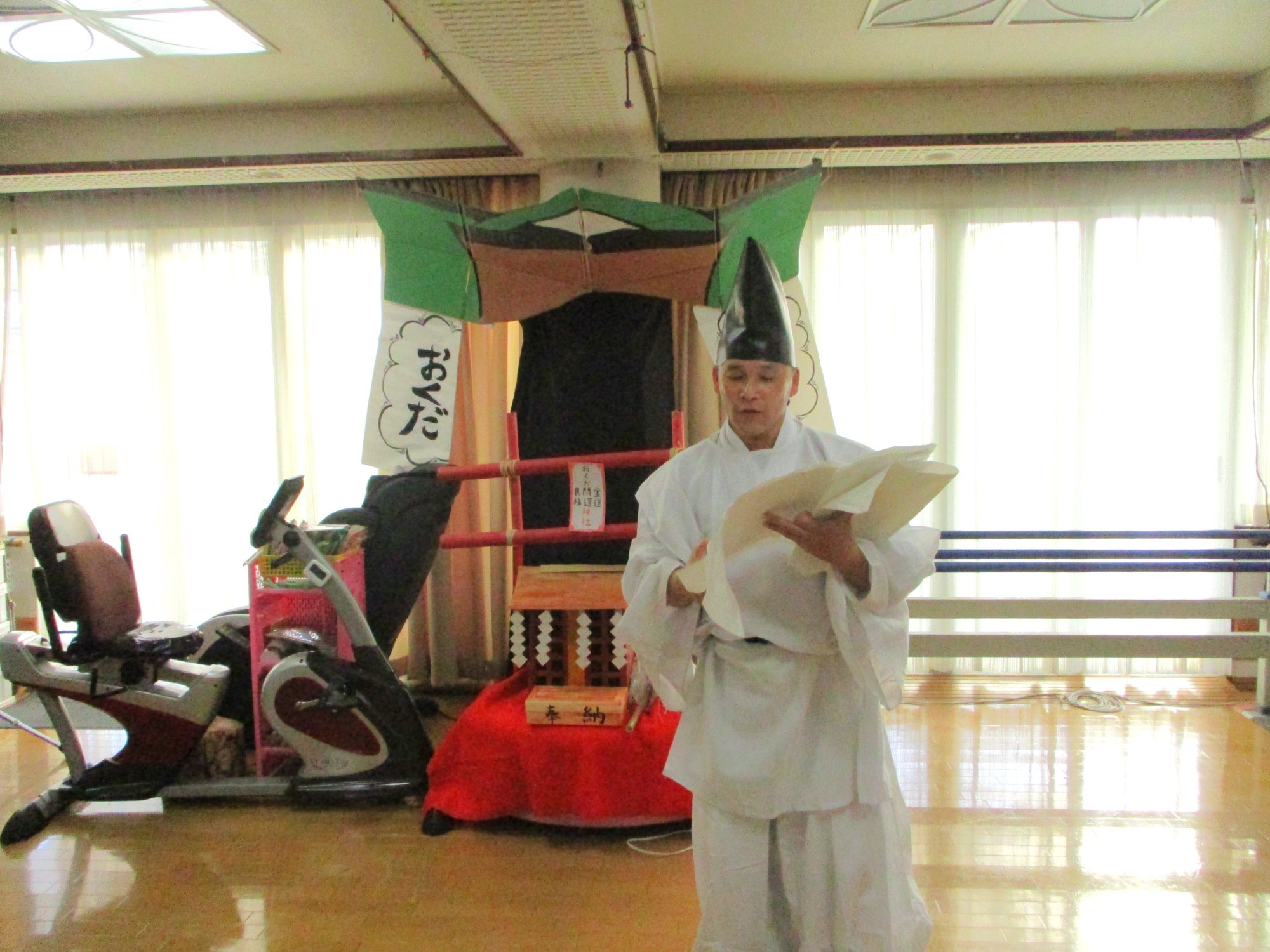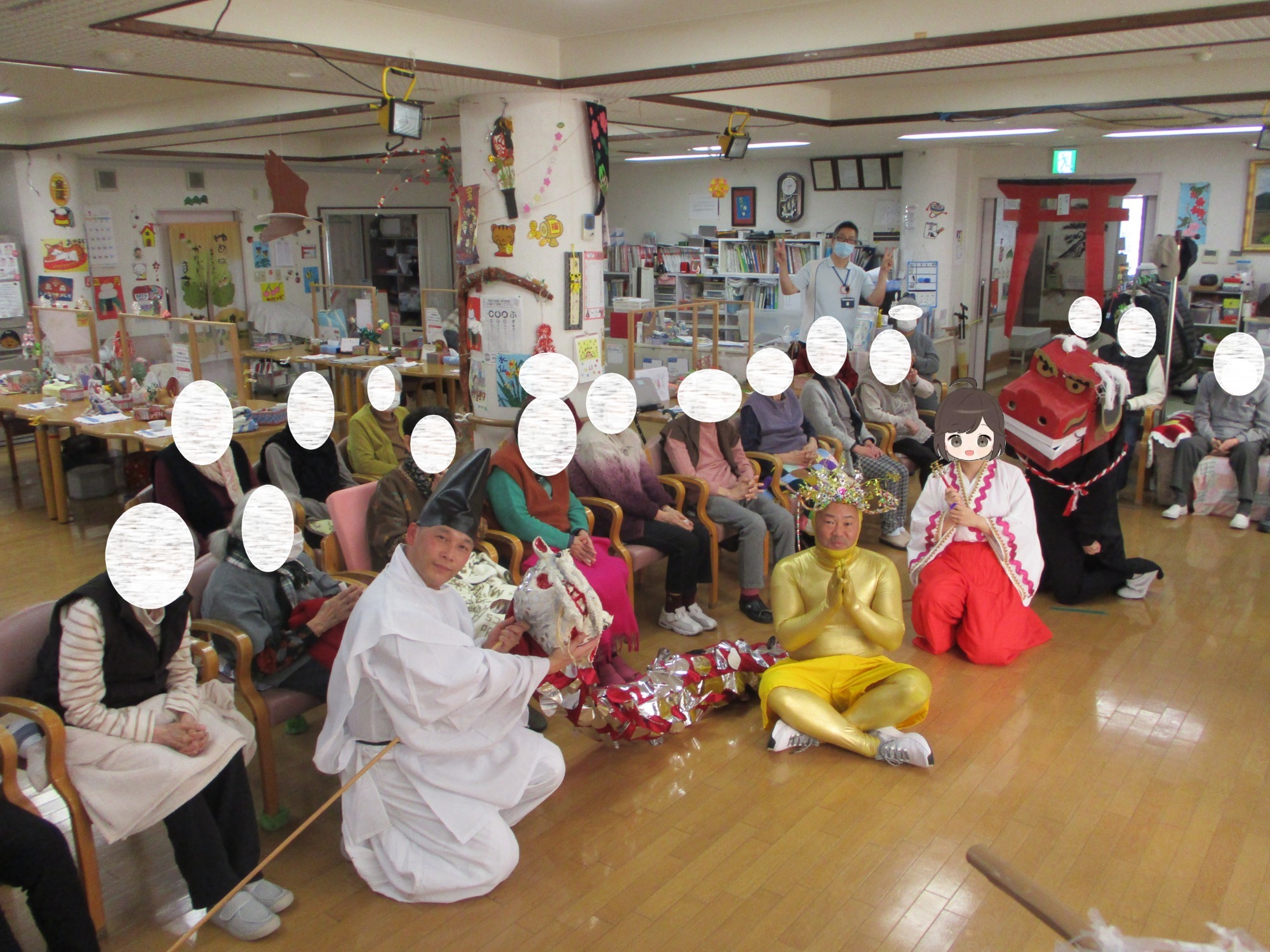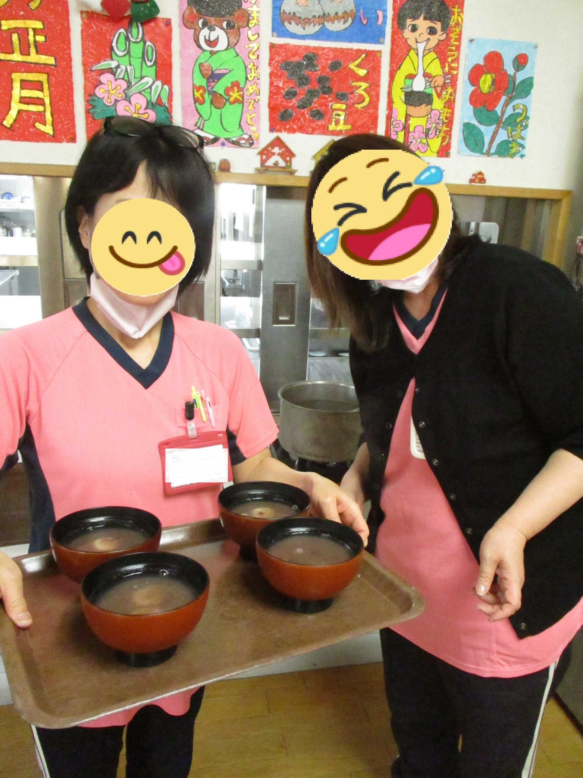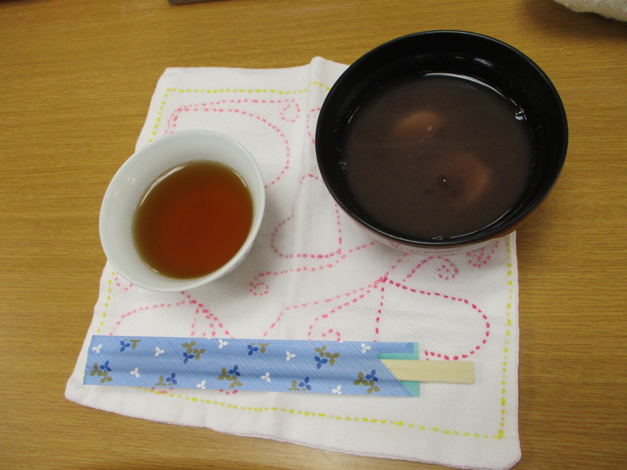 皆様明けましておめでとうございます!1月の行事といえば何がありますかね? そう、初詣!今年もおくだにおくだ神社が誕生しました♪ おくだ神社の神主さんにお祓いをしてもらって、巫女さんに清めの儀式をしてもらい、獅子舞に頭を噛まれる盛りだくさんのイベントで利用者さんの満足度が高いです(笑) おみくじで今年の運勢を占ったら、おやつの時間!お汁粉を食べました。おいしかったぁ~。 お餅ではなく白玉粉を使うんですけど、もちもちしておいしいです!