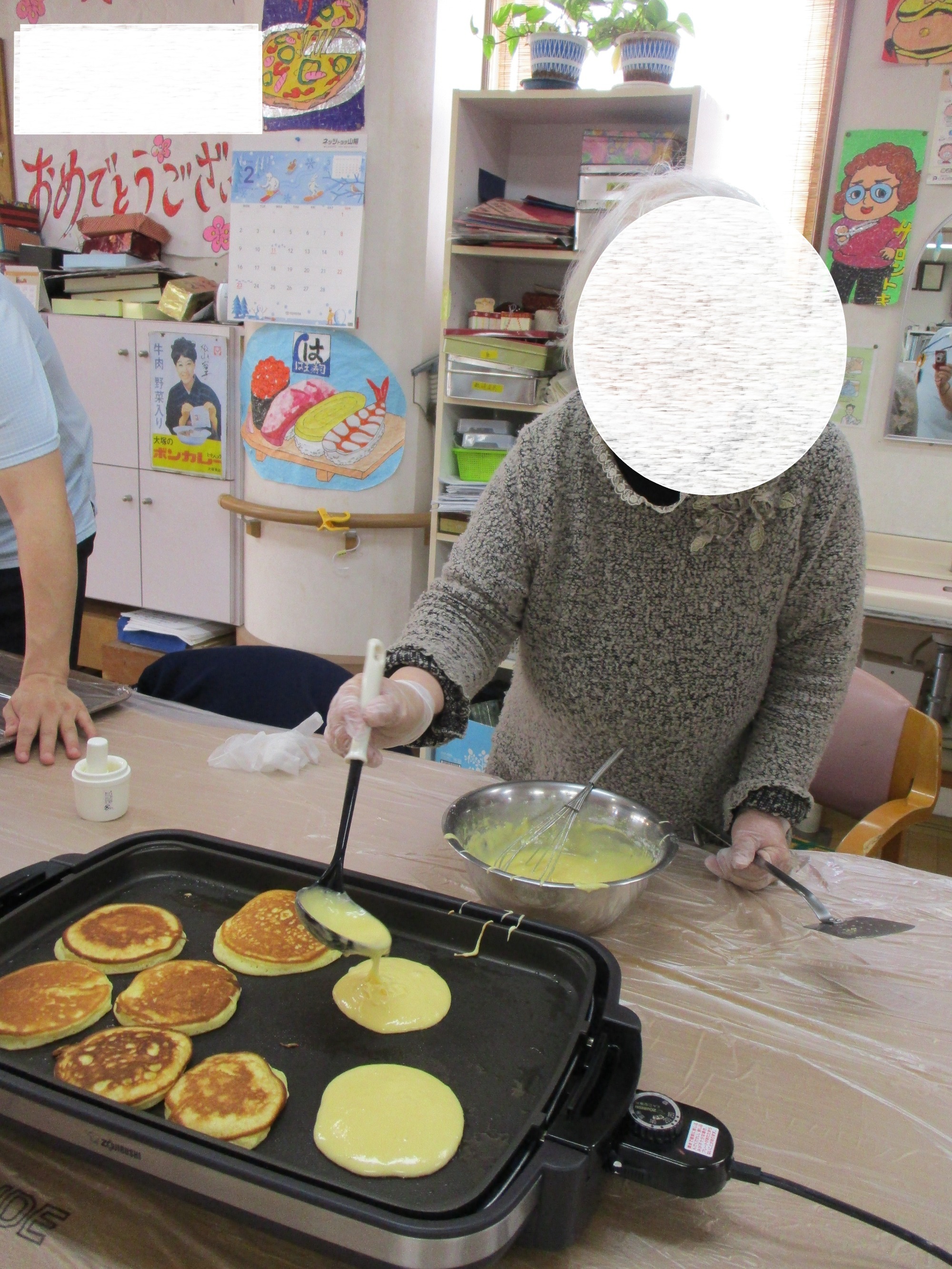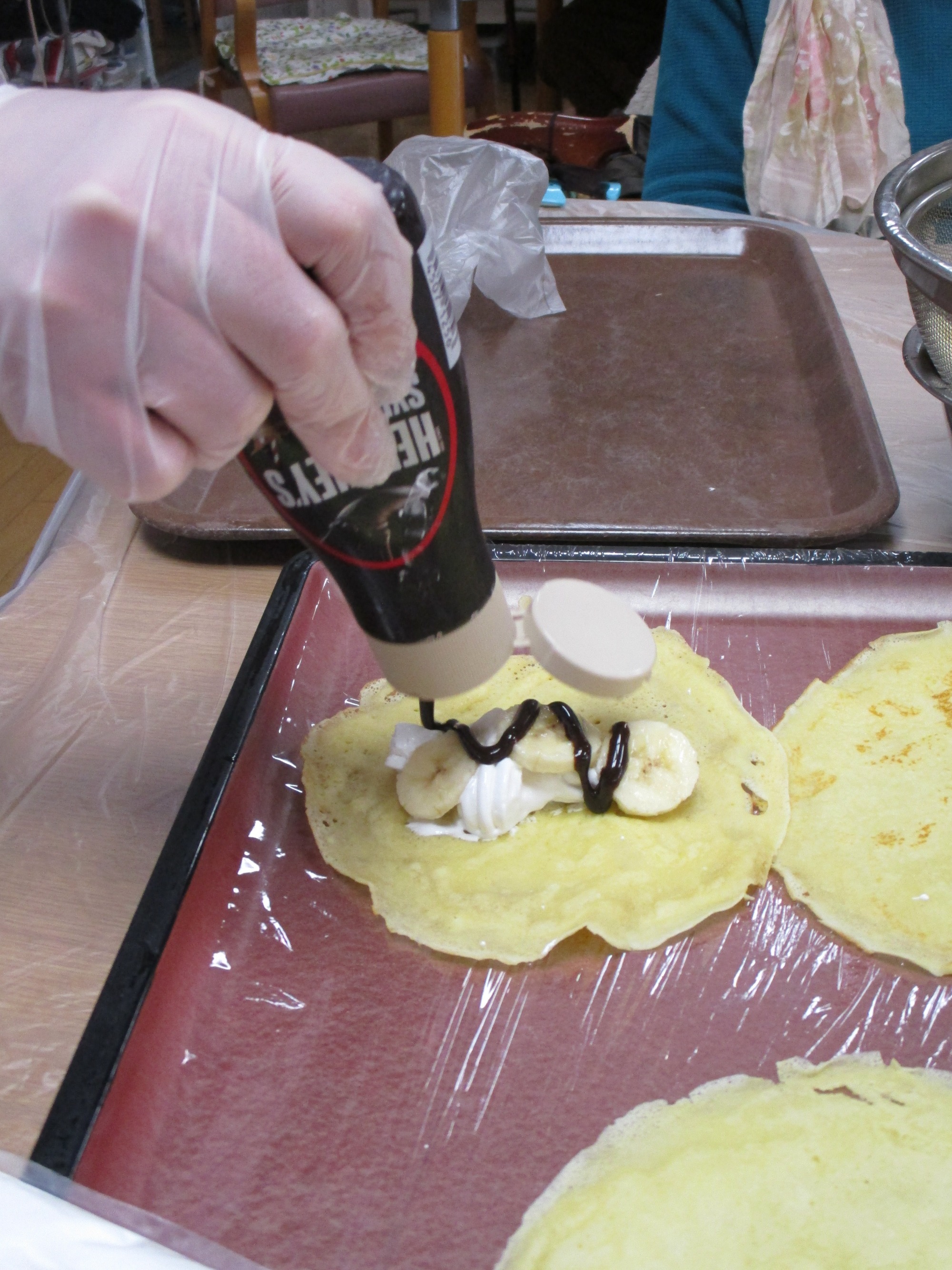 2月は節分イベントだけじゃない! バレンタインデーもあるので、リ八クックを開催しました! 季節に合わせてリハクックを行うと利用者の皆さんも季節感を感じられて大喜び。 今回のリハクックでは「どら焼き作り」と「クレープ作り」を二日間に分けて開催しました! 生地はもっちり米粉も使用♬ あんこやクリームを挟んだどら焼きもおいしいし、クレープではフルーツを挟んでチョコソースをかけたので、こちらもおいしかったです!